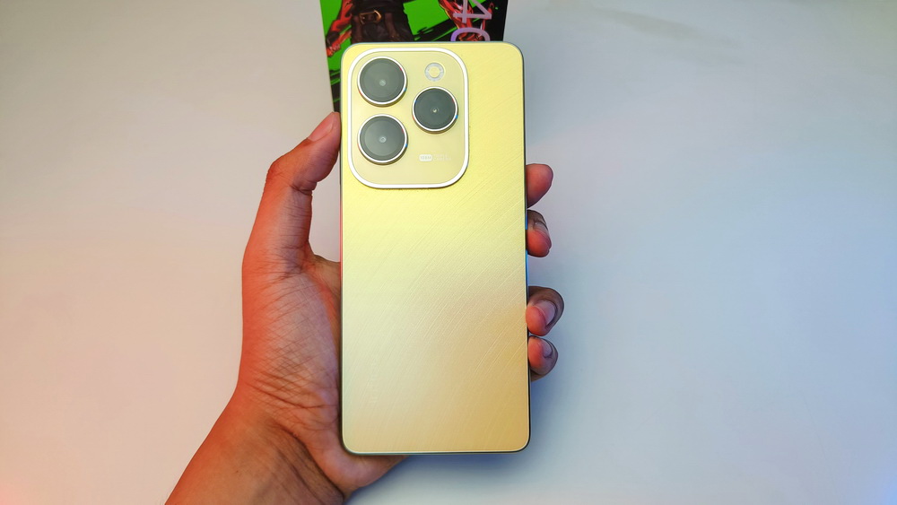 Dari segi desain, Infinix Hot 40 Pro tampil menonjol di antara kerumunan smartphone terjangkau lainnya. Pola garis-garis melengkung pada bodi belakangnya bukan hanya memperindah tampilan tetapi juga memberikan sensasi pegangan yang lebih baik. Material polikarbonat yang digunakan mungkin standar untuk kelas harganya, tetapi Infinix berhasil mengangkatnya ke level yang lebih tinggi dengan pilihan warna yang elegan dan finishing yang halus. Dengan dimensi dan bobot yang dirancang untuk kenyamanan pengguna, smartphone ini menjadi pilihan yang nyaman untuk digenggam dalam jangka waktu lama, baik saat berkomunikasi maupun bermain game.