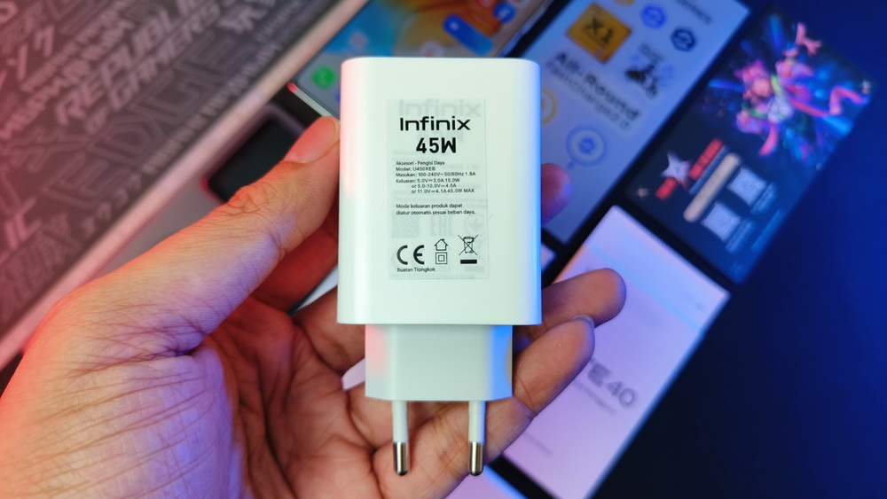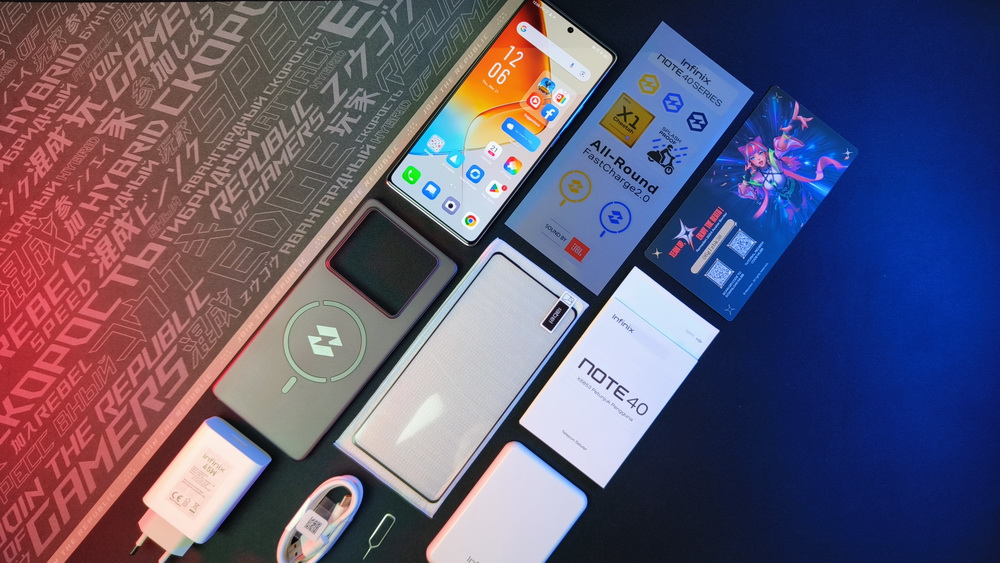 Membuka kotak, penulis disambut dengan Infinix Note 40 yang berada di paling atas, seolah-olah ponsel ini siap menyapa dunia. Di bawahnya, terdapat aksesori standar yang melengkapi pengalaman penggunaan: kabel pengisian USB-C, charger 45 watt yang mendukung pengisian cepat, dan case magnetik yang tidak hanya melindungi tapi juga menambah nilai estetika.