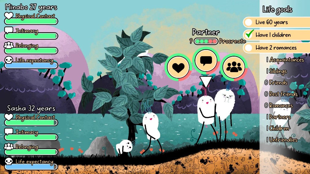 Minabo: A Walk Through Life adalah simulasi sosial di mana pemain mengalami kehidupan sebagai lobak. Permainan berfokus pada interaksi dengan lobak lain untuk membentuk kepribadian dan hubungan. Pemain membuat pilihan yang mempengaruhi kehidupan sosial lobak, menawarkan pelajaran tentang pertumbuhan pribadi dan konsekuensi dari keputusan.