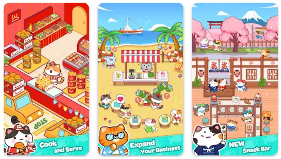 Cat Cooking Bar menawarkan pengalaman manajemen restoran di mana kucing mengolah makanan lezat. Game ini berfokus pada relaksasi dan penyembuhan melalui interaksi dengan kucing dan suara meong yang menggemaskan. Pemain mengelola staf kucing dan melayani pelanggan kucing, menciptakan atmosfer hangat dan menyenangkan.