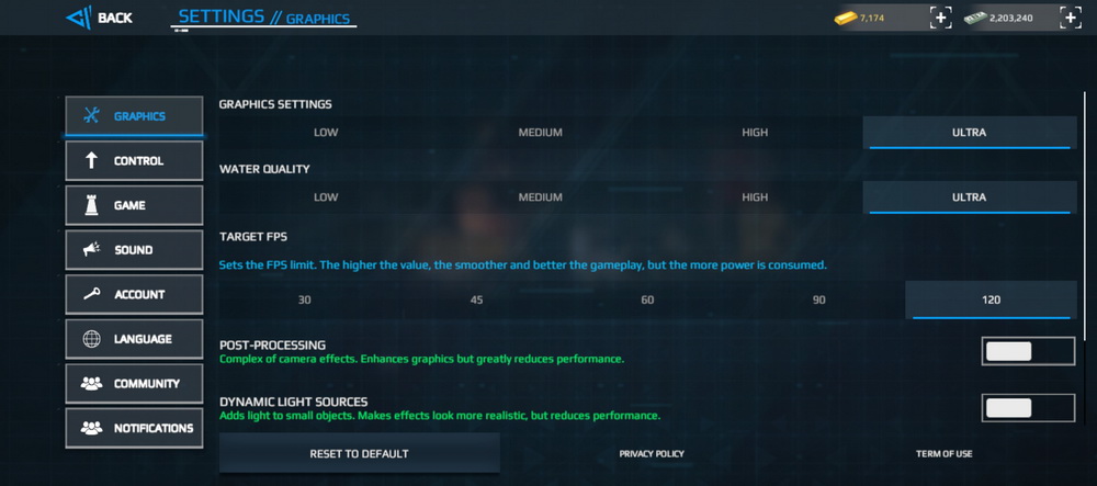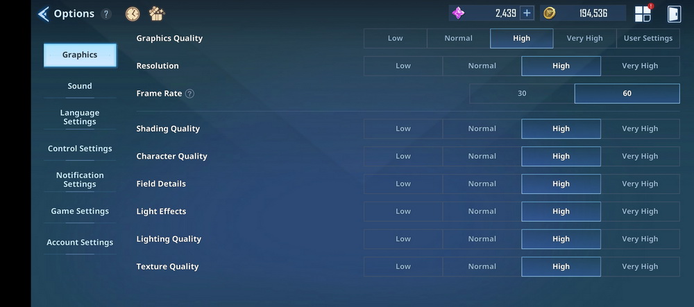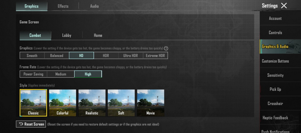 Berikut adalah screenshots pengaturan grafis dari tiap-tiap game mobile yang penulis uji: