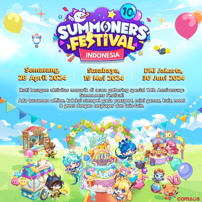 Untuk merayakan ulang tahunnya yang kesepuluh, Summoners War Indonesia akan mengadakan rangkaian event offline “Summoners Festival” di tiga kota besar di Indonesia yaitu, Semarang, Surabaya dan DKI Jakarta.