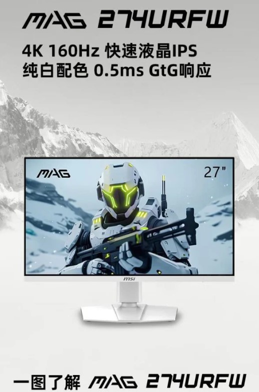 MSI telah mengumumkan monitor gaming 4K terbaru bernama MAG 274URFW di pasar China. Monitor ini dibanderol dengan harga 2499 Yuan (sekitar $345) dan sudah tersedia untuk pre-order di JD.com. Monitor ini akan resmi dijual mulai tengah malam tanggal 14 April. Mari kita lihat spesifikasi utamanya.