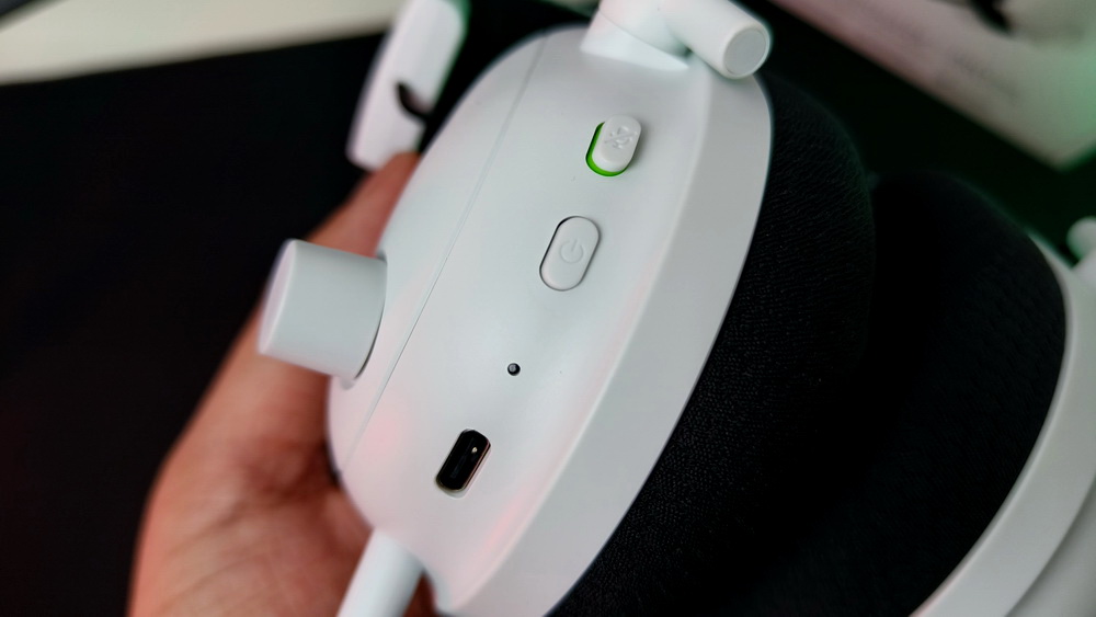 Razer BlackShark V2 Pro dilengkapi dengan berbagai kontrol yang terletak di earcup, termasuk: