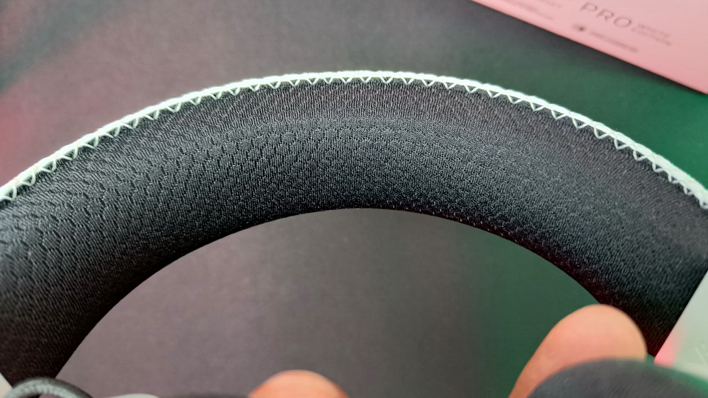 Headband dari Razer BlackShark V2 Pro juga dilapisi dengan bahan yang sama dengan bantalan telinga, memberikan kenyamanan yang konsisten di seluruh bagian headset. Bahkan bagi pengguna dengan kepala botak, bahan ini mencegah tekanan berlebih pada kulit kepala, membuat headset ini nyaman digunakan tanpa terasa sakit.
