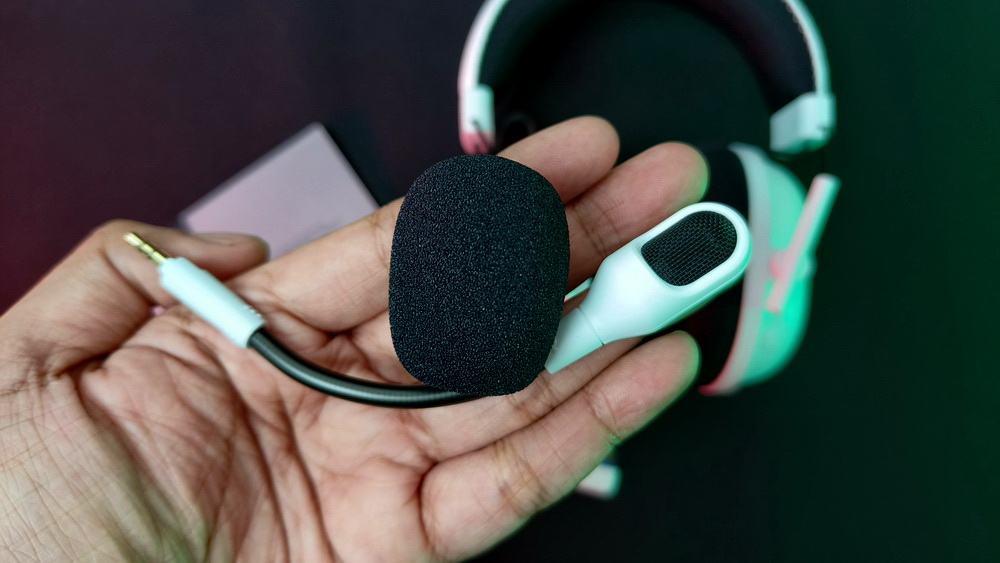 Headset ini dilengkapi dengan mikrofon yang dapat dilepas, serta filter pop yang disertakan. Mikrofon ini menawarkan kualitas suara yang jernih dan jelas, ideal untuk komunikasi selama bermain game. Filter pop membantu mengurangi suara letupan yang dihasilkan oleh konsonan seperti “p” dan “t,” memberikan kualitas suara yang lebih bersih.