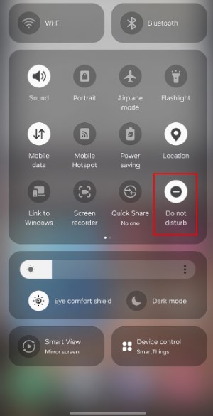 - Tarik turun Notification bar dan cari ikon Do not disturb