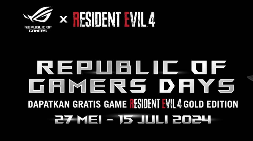 Program Republic of Gamers Days diselenggarakan secara online dan offline melalui Laptop retailer dan etailer resmi di seluruh penjuru Indonesia. Info lengkap mengenai syarat dan ketentuan program, serta daftar retailer dan etailer resmi ASUS di seluruh Indonesia dapat dilihat di halaman website ini: https://id.rog.gg/residentevil4