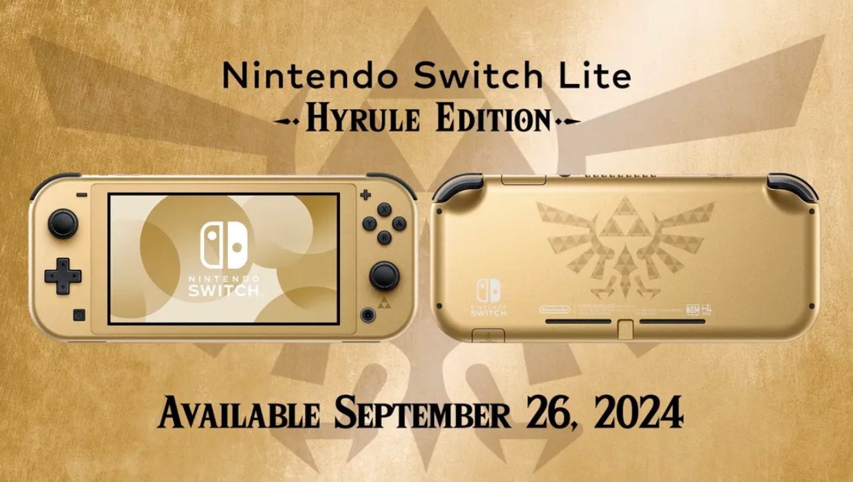 Edisi khusus Nintendo Switch Lite dengan warna emas dan lambang Hyrule, rilis 26 September 2024.