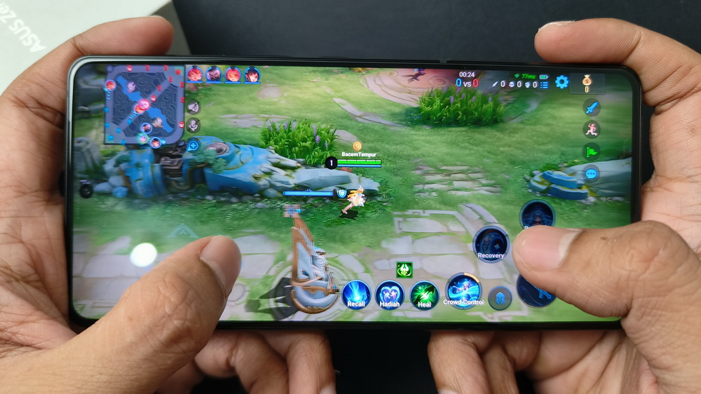 Dalam penggunaan gaming, Zenfone 11 Ultra mampu menjalankan game berat seperti Genshin Impact dengan stabil pada 60 FPS pada setting high. Setelah penggunaan lama, FPS turun ke sekitar 50 untuk menjaga suhu tetap rendah, dengan suhu maksimum sekitar 41 derajat Celsius. Game Mobile Legends dan PUBG Mobile juga berjalan lancar tanpa throttling, dengan suhu stabil di 37 derajat Celsius.