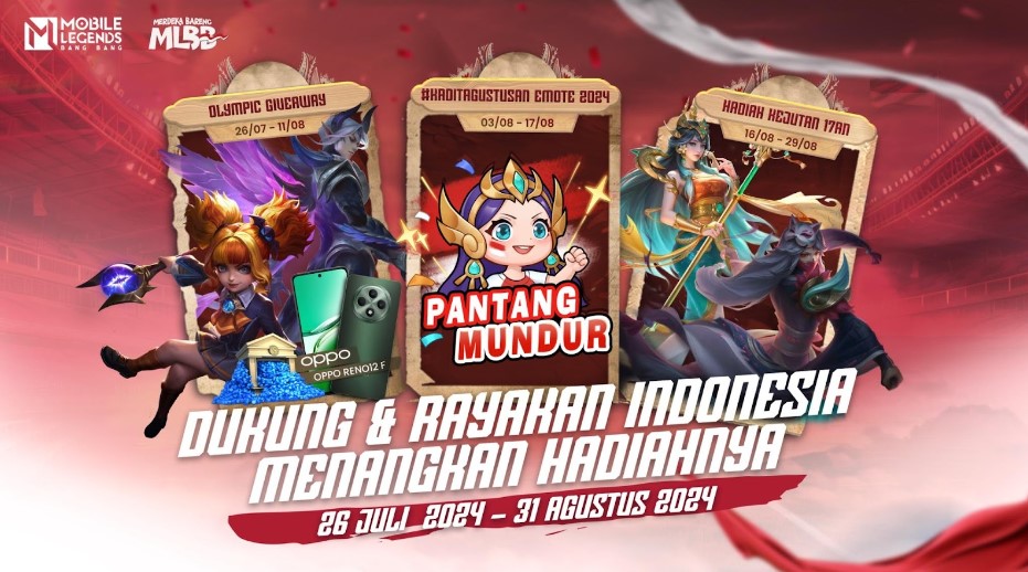 Dalam rangka menyambut Olimpiade serta Hari Kemerdekaan Negara Kesatuan Republik Indonesia, Moonton Games selaku pengembang game Mobile Legends: Bang Bang (MLBB) akan mengadakan event bertajuk “Merdeka Bareng MLBB” yang menawarkan berbagai hadiah menarik untuk para pemain.