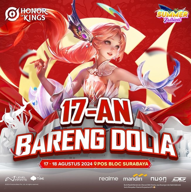 Setelah Jakarta dan Semarang, kini waktunya Honor of Kings hadir menyapa komunitas di Surabaya. Rangkaian acara seru akan diadakan di Pos Bloc Surabaya pada 17-18 Agustus 2024 dengan tema Dolia, Hero terfavorit pilihan para pemain di Surabaya.
