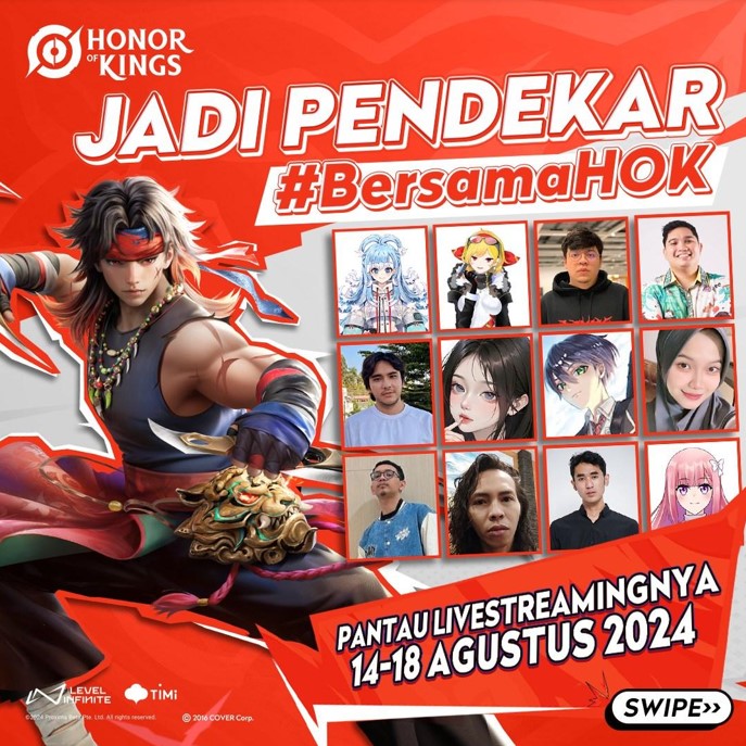 Pada 17-18 Agustus 2024 mendatang, Honor of Kings akan menggelar dua aktivasi offline di dua kota yaitu Jakarta dan Surabaya, serta berbagai event yang digelar secara online seperti Fanart Competition, KOL Livestream, event Mabar, serta skin Epic gratis!