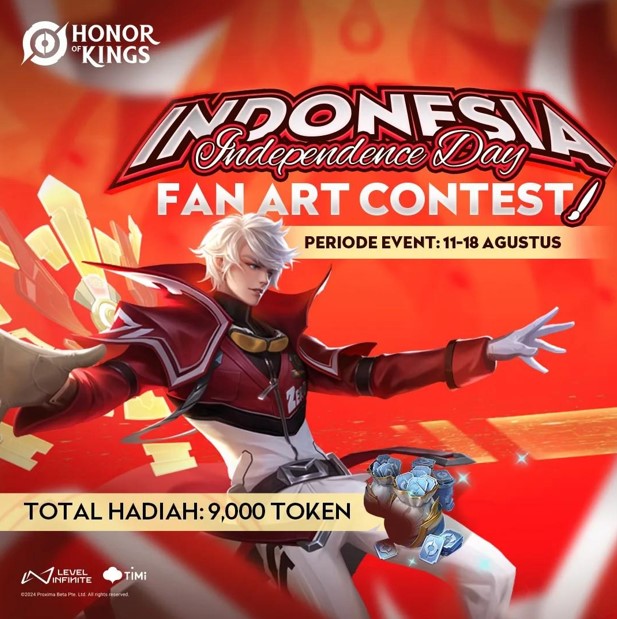 Hasil karya yang dibuat harus autentik buatan penggemar, tidak boleh menggunakan desain AI. Hadiah dari Indonesia Independence Day Fan Art Contest adalah 9,000 token untuk empat orang pemenang dengan hasil karya terbaik. Event akan berlangsung mulai tanggal 11 sampai 18 Agustus 2024!