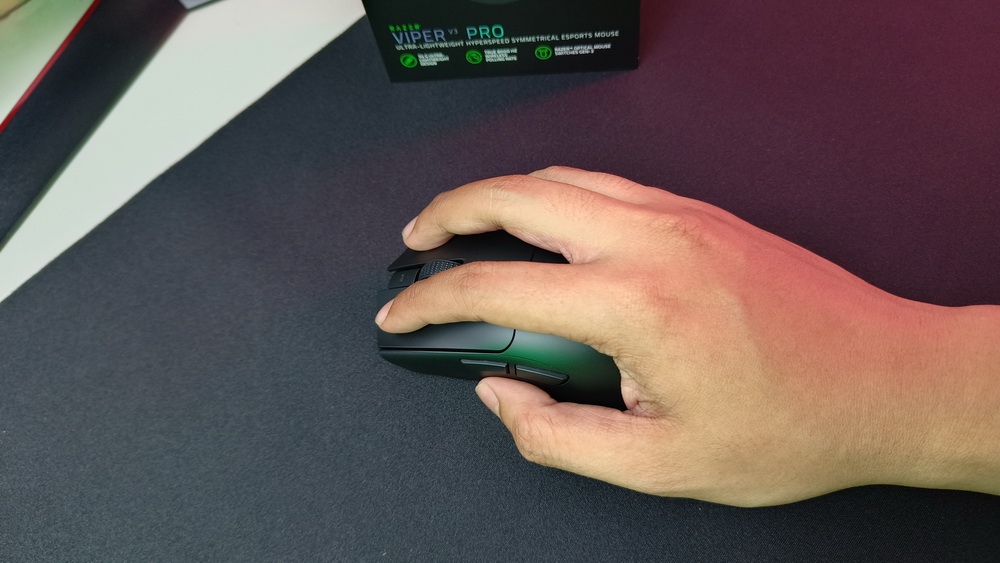 Ergonomi adalah salah satu faktor penting dalam memilih mouse gaming, dan Razer Viper V3 Pro tidak mengecewakan dalam aspek ini. Mouse ini dirancang untuk mendukung berbagai jenis pegangan tangan, baik itu claw grip maupun palm grip. Namun, ada beberapa catatan terkait posisi roda scroll yang mungkin terasa sedikit kurang ideal bagi sebagian pengguna. Roda scroll yang berada sedikit lebih ke belakang mungkin lebih cocok untuk pengguna dengan pegangan claw grip, sementara pengguna dengan pegangan palm grip mungkin perlu sedikit beradaptasi.