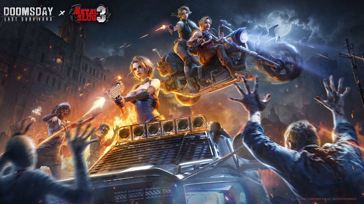 Doomsday: Last Survivors merupakan sebuah game survival bertema zombie. Game yang dirilis pada Maret 2023 lalu ini menawarkan pengalaman bermain sebagai penyintas dunia apokalips. Pemain dapat membangun ulang peradaban manusia dan melawan zombie serta pemain lain untuk bertahan hidup. Di kolaborasi kali ini, Doomsday: Last Survivors mengajak Metal Slug 3 dalam sebuah kolaborasi. Metal Slug 3 sendiri adalah game run-and-gun klasik yang telah memikat pemain di seluruh dunia dengan gaya seni yang unik, gameplay yang menantang, dan karakter-karakter yang berkesan. Nantikan datangnya kolaborasi epik ini pada 2 September – 31 Oktober 2024 nanti.