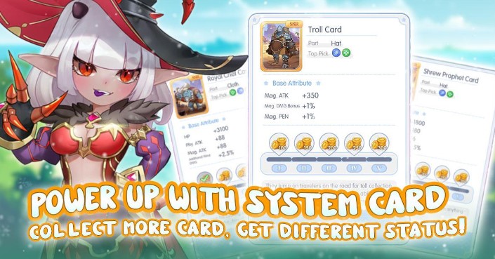 Temukan kartu dari semua monster yang ada di Blueland. Setiap kartu monster memiliki status dan skill yang berbeda-beda. Perkuat equip kamu dengan kombo kartu terbaik.
