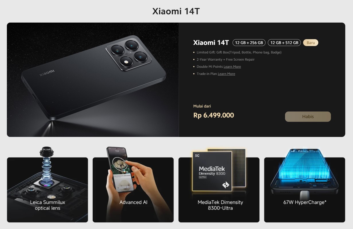 - Xiaomi 14T (12GB/256GB): Rp6.499.000