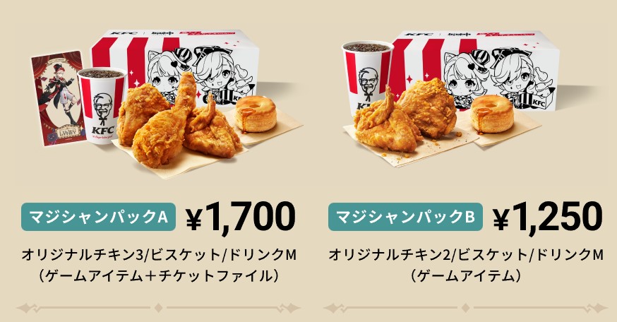 Dalam kolaborasi ini, KFC meluncurkan Genshin Collaboration Magician Pack, menu spesial yang menampilkan dua karakter dari wilayah Fontaine, yaitu Lyney dan Lynette. Kedua karakter ini muncul di kemasan combo meal, yang tentu saja menyajikan ayam goreng lezat khas KFC. Selain menikmati makanannya, pembeli juga akan mendapatkan hadiah khusus di dalam game.