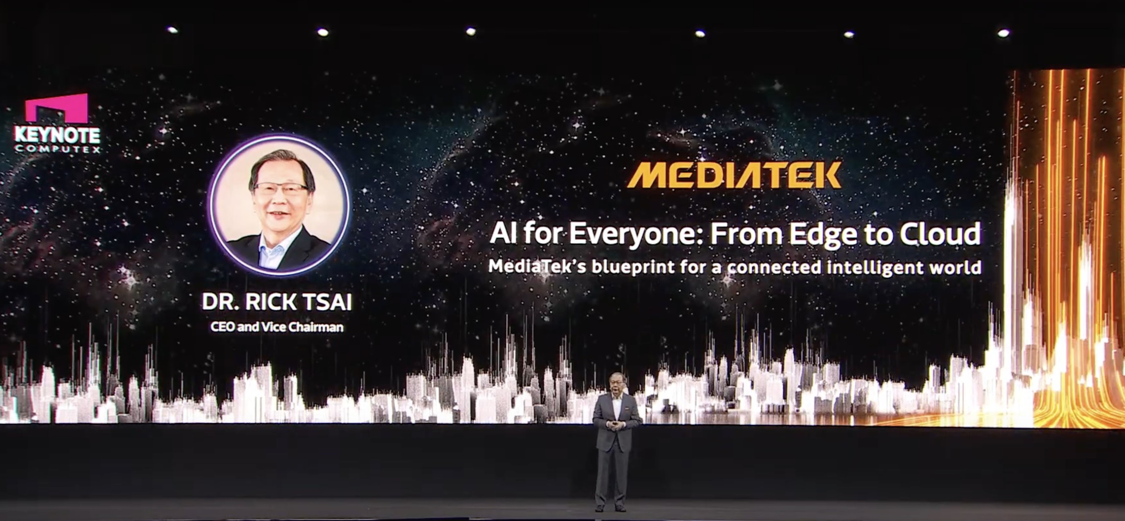 Dr. Rick Tsai, Vice Chairman dan CEO MediaTek, membuka acara dengan membagikan visi perusahaan dalam transformasi digital global melalui penggabungan AI, 6G, dan komputasi edge-to-cloud. Menurutnya, MediaTek ingin menciptakan ekosistem teknologi yang tidak hanya pintar, tapi juga saling terhubung dan relevan untuk kebutuhan masa kini.
